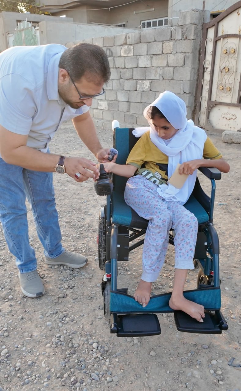 He leads field humanitarian initiatives across various Iraqi provinces, aimed at supporting the most vulnerable groups, especially people with disabilities and underprivileged families.